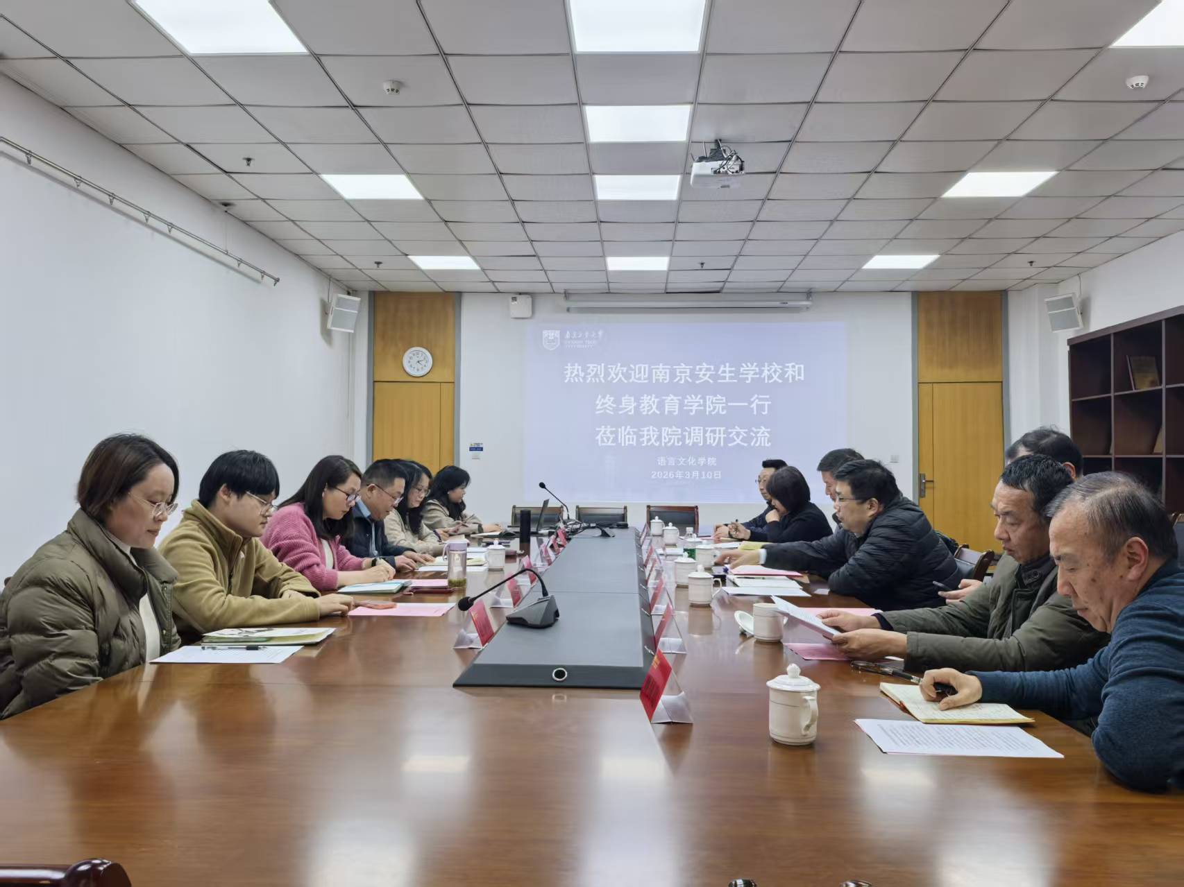 在经济与管理学院,调研组与学院党委书记陈同扬、院长姚山季、副院长张长江及相关科室负责人举行了座谈。双方围绕高等学历继续教育课程建设、“二学历”教育、职业技能等级认定以及国家专业技术人员继续教育平台建设等核心议题展开了讨论。经济与管理学院方面表示,将充分发挥学科专业优势,与终身教育学院协作,在复合型人才培养模式上做“加法”,共同为学校、学院高质量发展赋能。